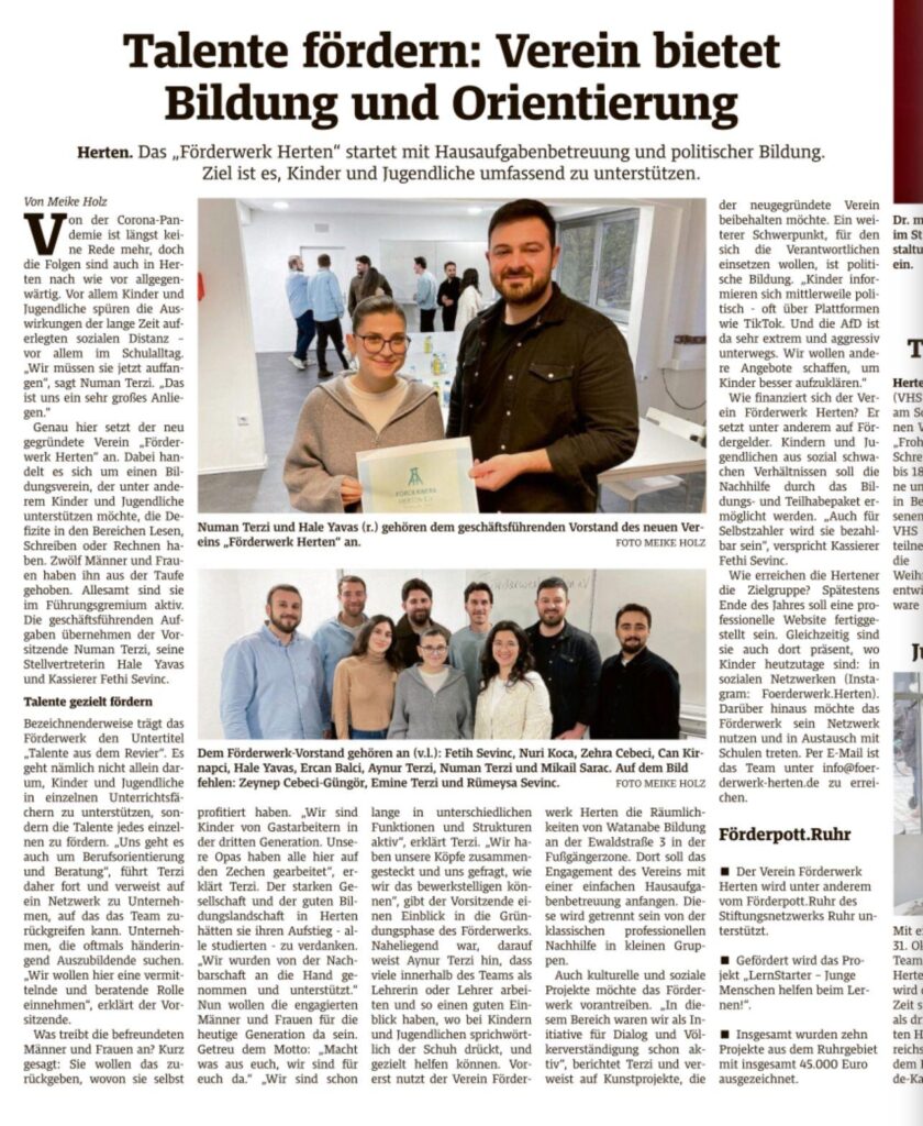 Nach vielen Monaten Vorbereitung, intensiven Gesprächen, einer vielzahl an Ideen sind wir stolz, nun offiziell mit dem Förderwerk Herten an den Start zu gehen. Wir möchten Kinder und Jugendliche stärken: schulisch, sozial und persönlich!
